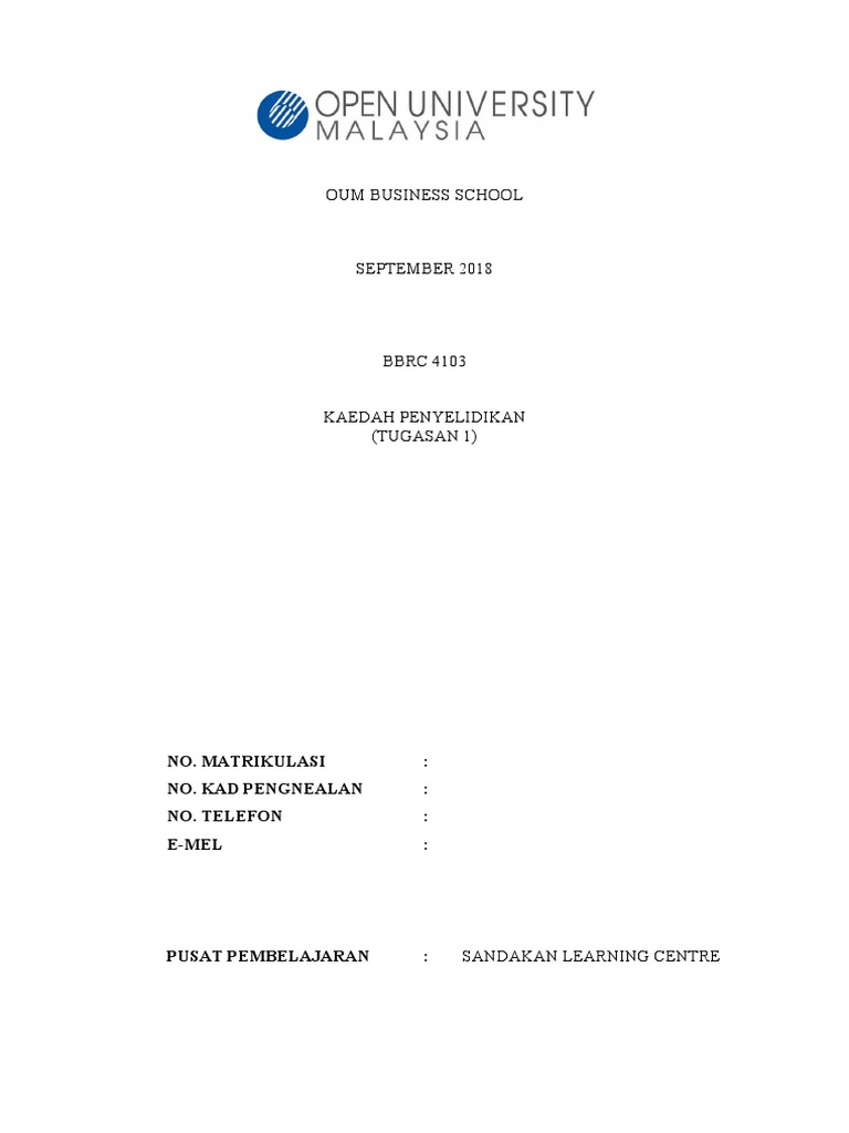 Full Assignment 1 Bbrc4103 Kaedah Penyelidikan Doc Kod Kursus Oum Business School September 2018 Bbrc 4103 Kaedah Penyelidikan Tugasan 1 No Course Hero